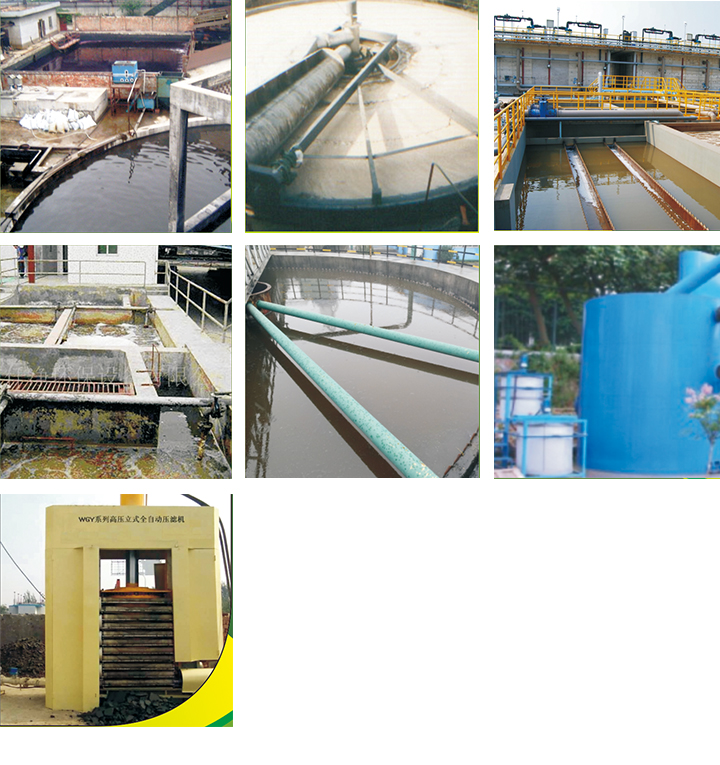 氣能絮凝系統(tǒng)的浮渣、水解酸化池的污泥和二沉池剩余污泥收集于污泥濃縮池,經(jīng)壓濾機(jī)脫水后外運(yùn)。
